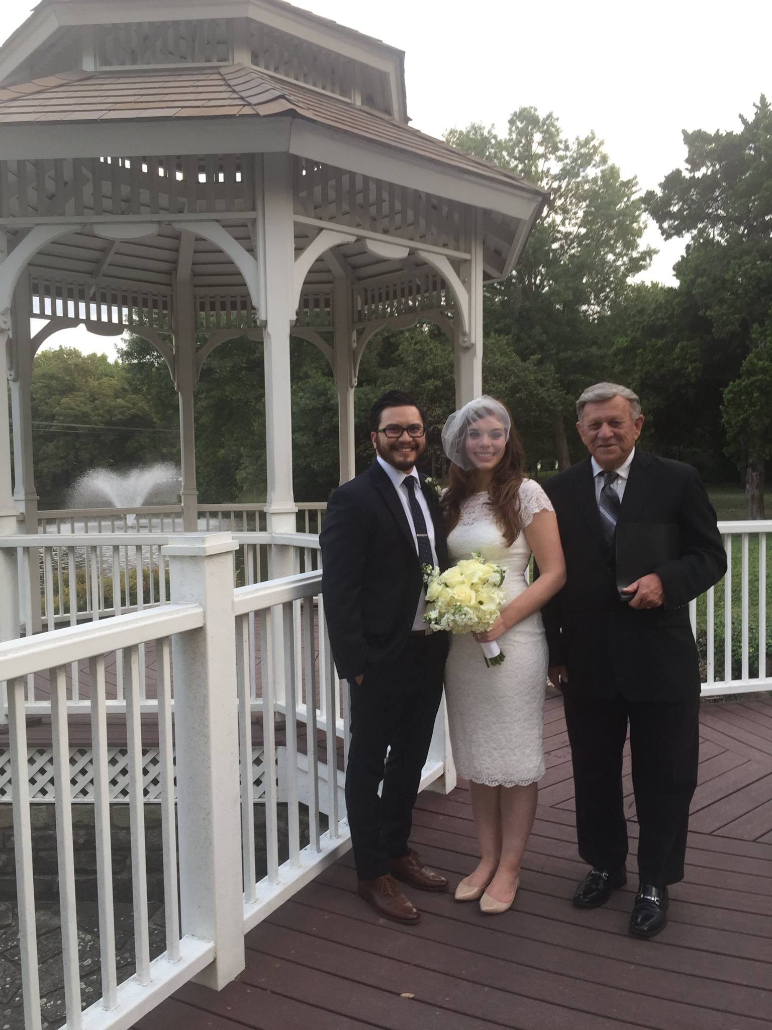 He will go to any location in the Metroplex or in North Texas or East Texas to perform a ceremony. He also can help couples find a location for their wedding, and also can arrange for a photographer, musician, etc., if requested.